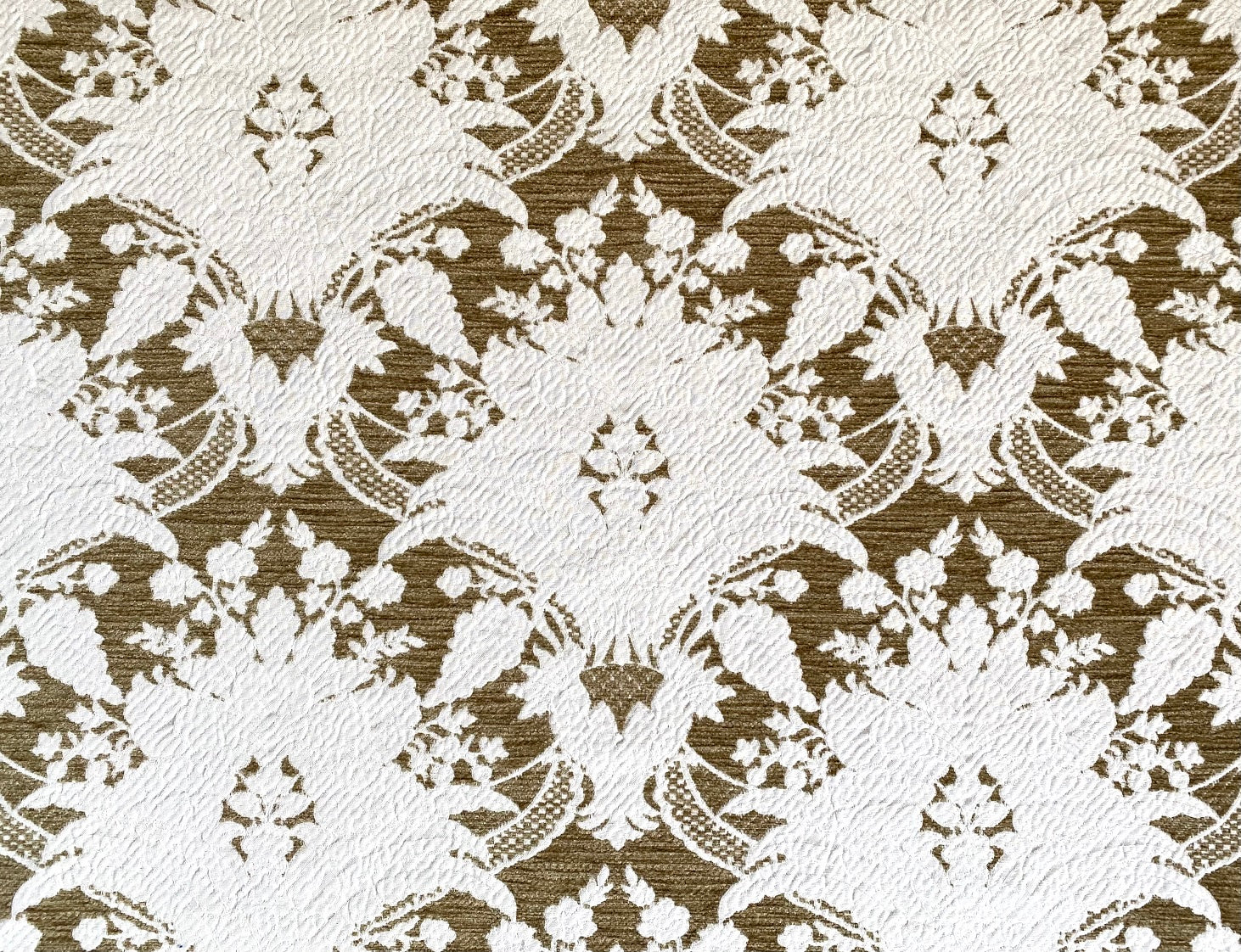 UN DISEGNO CLASSICO RIVISITATO IN CUI I FILI D'ORO ORIGINALI SONO SOSTITUITI DA COTONE BIANCO CHE LO RENDONO SIMILE AD UN PIQUET. UN TRATTAMENTO PARTICOLARE AMMORBIDISCE IL VELLUTO E NE RISALTA LA TRIDIMENSIONALITA'. PUO' ESSERE UTILIZZATO IN ENTRAMBI I VERSI.
